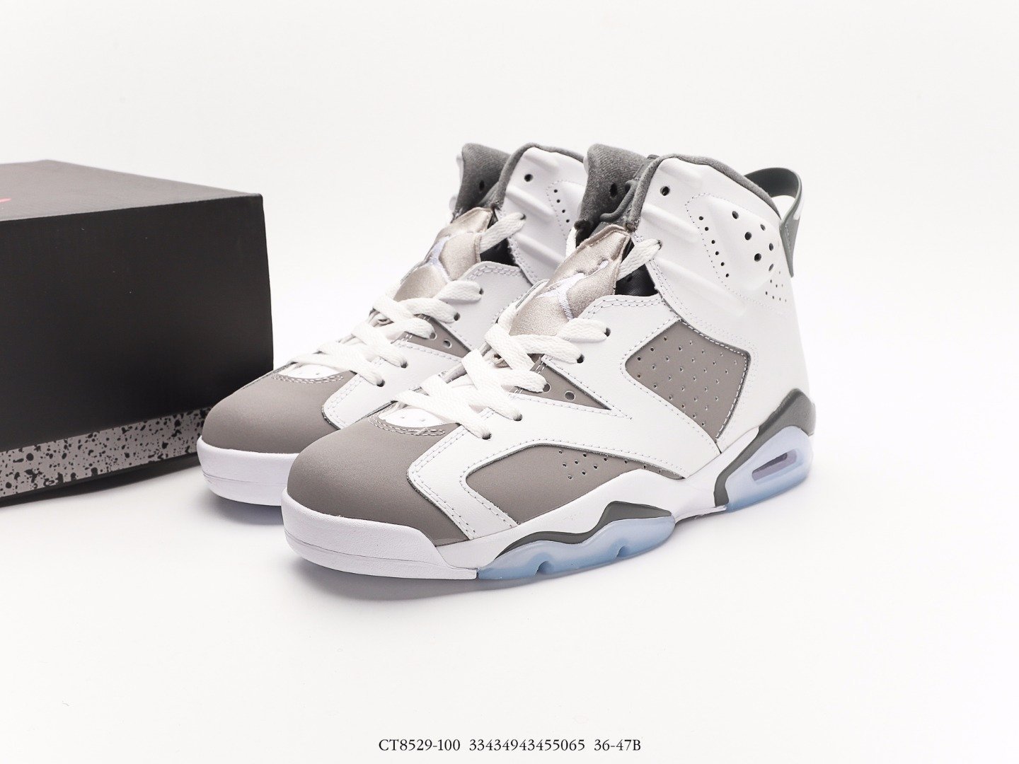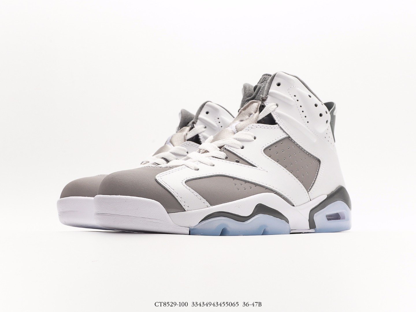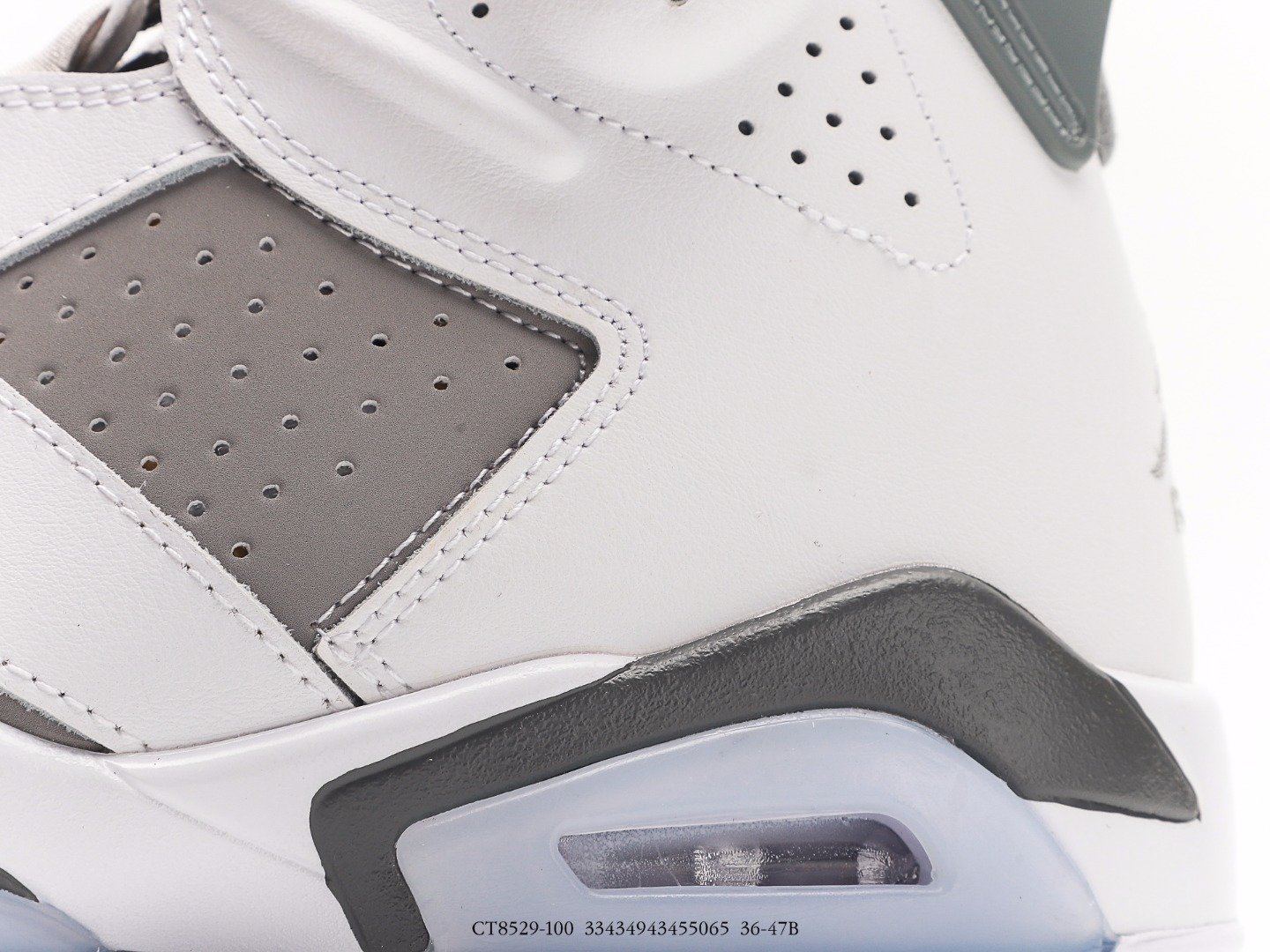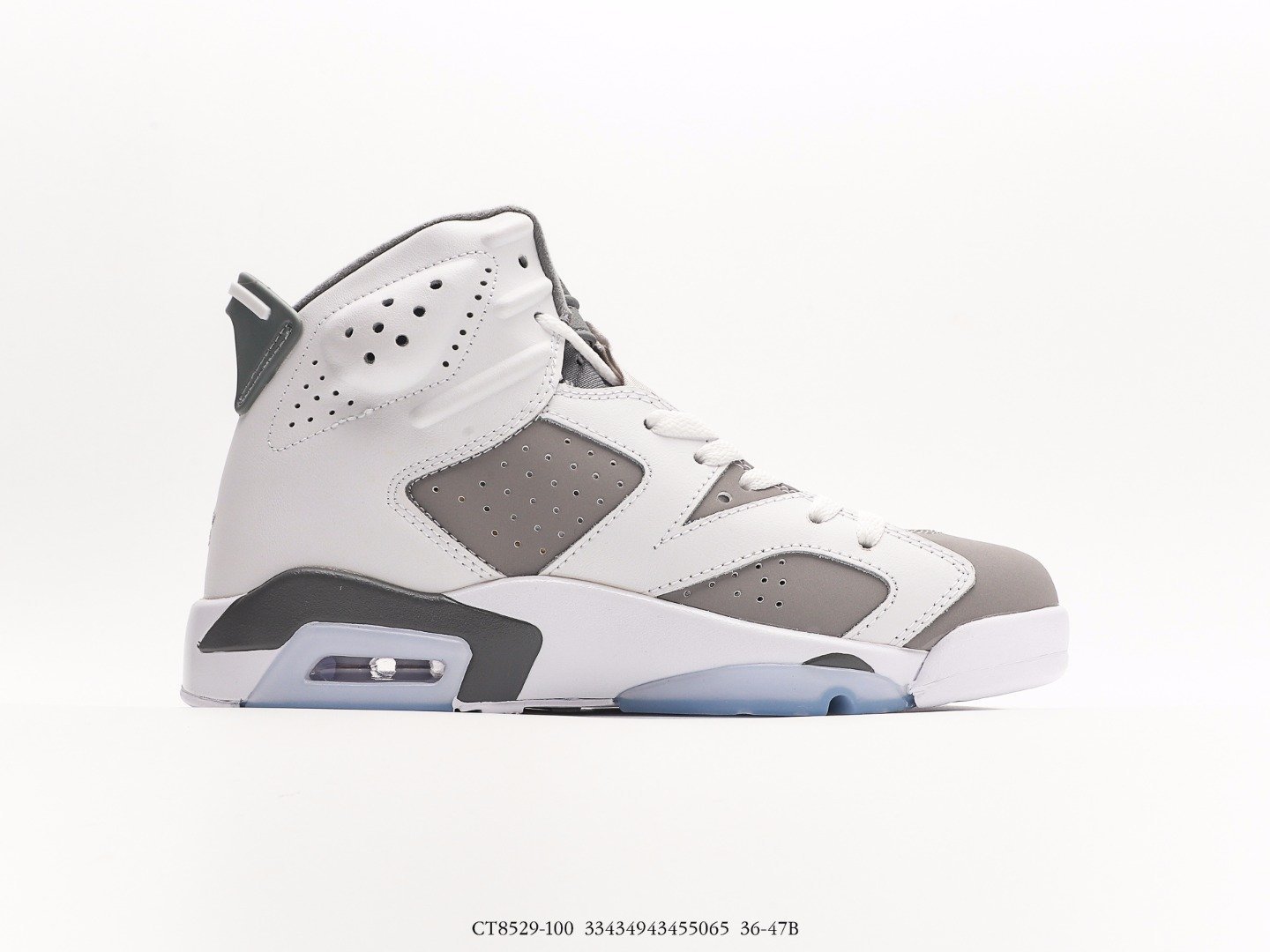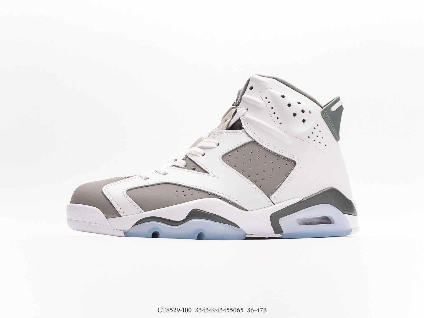 The Jordan Air Jordan 6 Cool Grey AJ6 features a color scheme of white, medium gray, and cool gray, inspired by the Air Jordan 11 Cool Grey